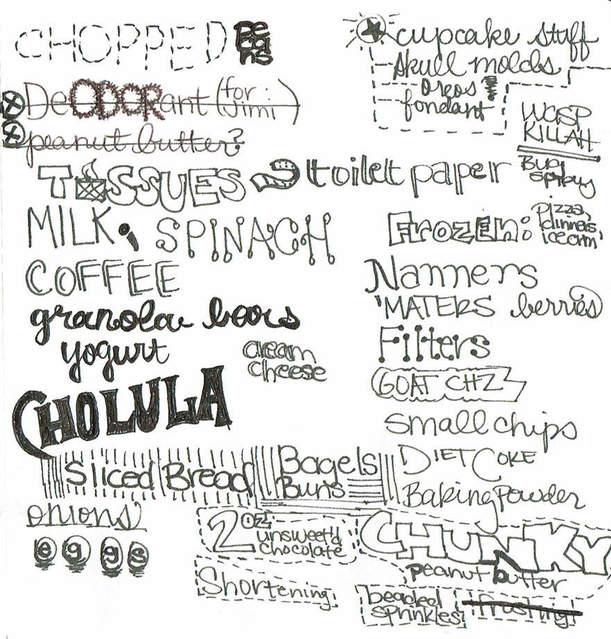 In a recent post, I talked about my love of sketchnotes and visual note taking. I am like, OB-sessed with practicing my handwriting every chance I get. I found handwritten grocery lists to be a great way of exercising these skills, and have collected some that I’ve done in the past few months for you below.